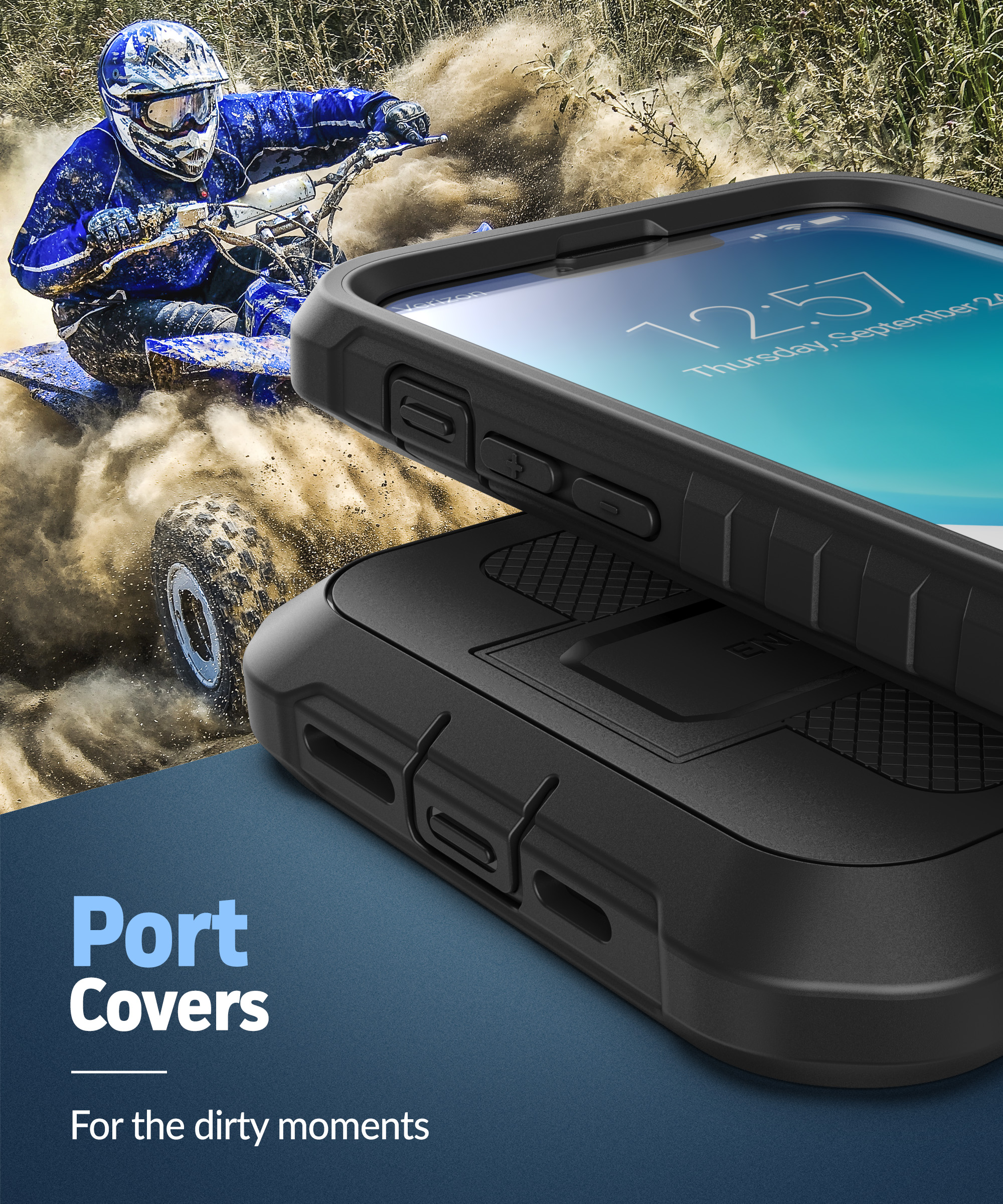 Belt Clip Holster, Kickstand, Built-in Screen Protector, Rugged