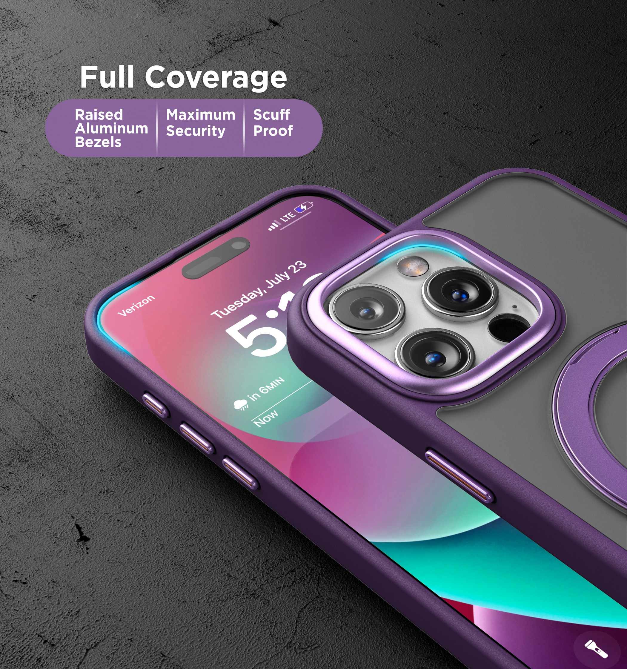The case incorporates a versatile aluminum pop-out ring that functions as both a kickstand for hands-free viewing and a reliable grip for one-handed use. The ring folds completely flat when not in use, maintaining a sleek profile. 360-degree rotating mechanism allows for endless customization of your viewing and holding angles. The precision-engineered ultra flex hinge is designed to withstand additional tension at this all-too-common breakage point.