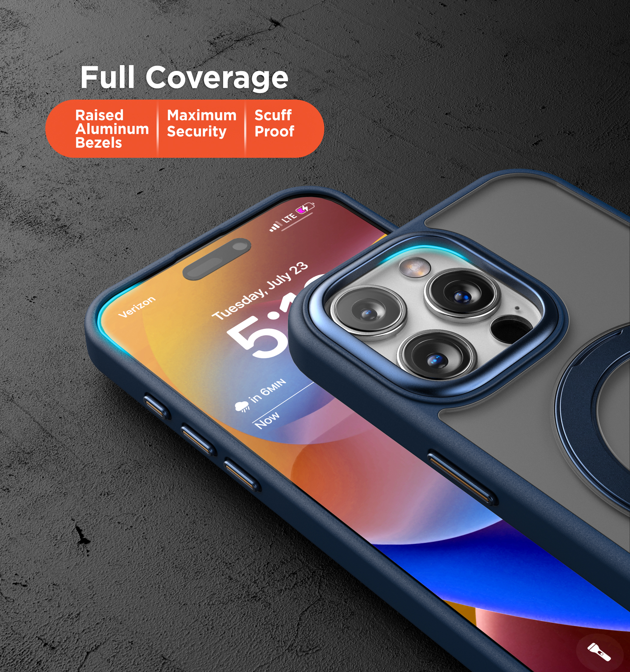 The case incorporates a versatile aluminum pop-out ring that functions as both a kickstand for hands-free viewing and a reliable grip for one-handed use. The ring folds completely flat when not in use, maintaining a sleek profile. 360-degree rotating mechanism allows for endless customization of your viewing and holding angles. The precision-engineered ultra flex hinge is designed to withstand additional tension at this all-too-common breakage point.