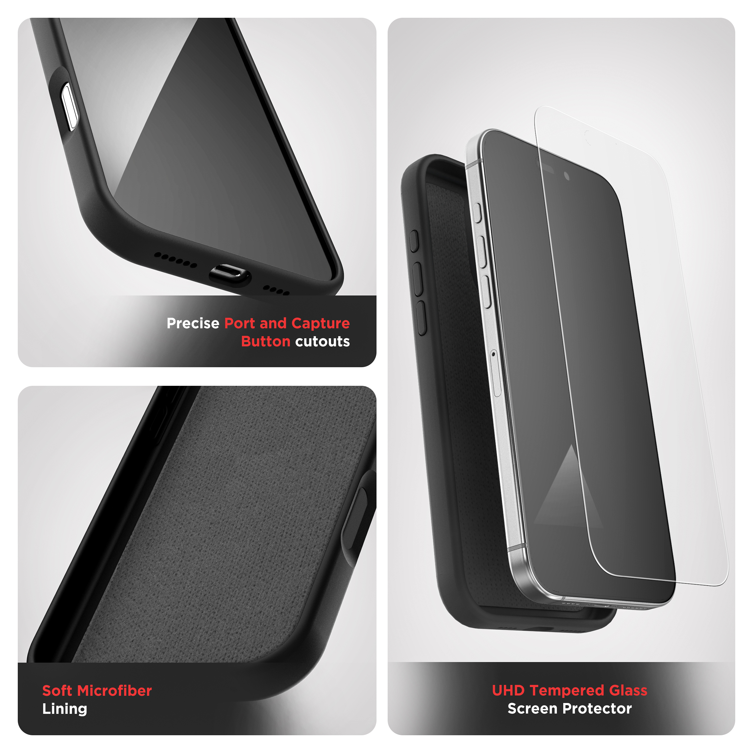 Crafted from premium liquid silicone, this case offers a soft-touch, non-slip grip while safeguarding your device. Micro-Flex technology and a soft microfiber interior absorb shock, protecting your phone from everyday bumps and drops. The case’s smooth surface resists smudges and fingerprints for a clean look. Precise cutouts for the charging port and Capture button preserve full functionality without interference.